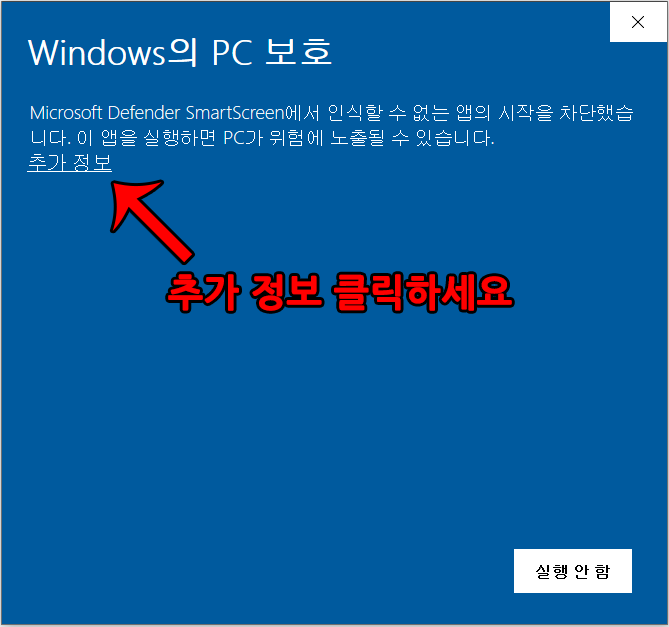 Windows Defender SmartScreen에서 인식할 수 없는 앱의 시작을 차단했습니다.